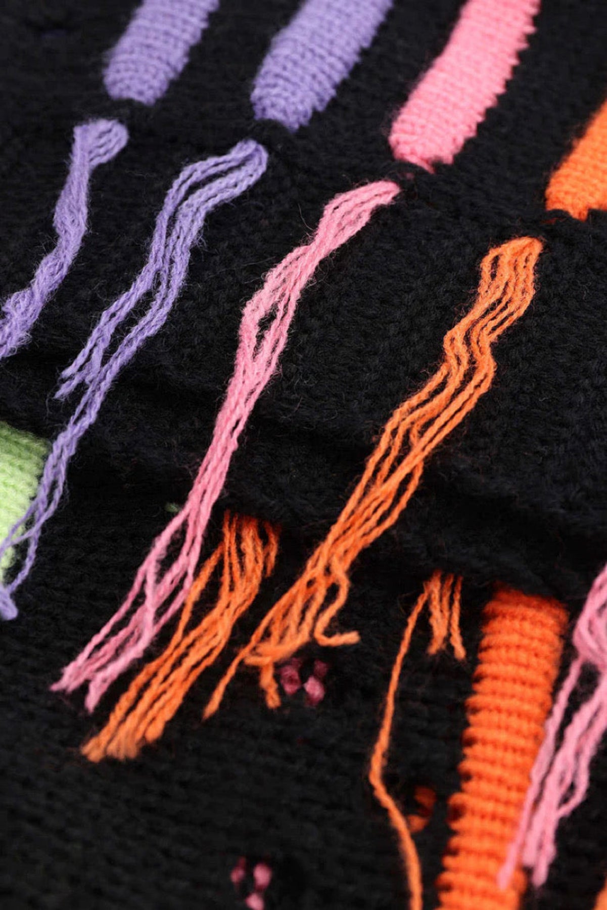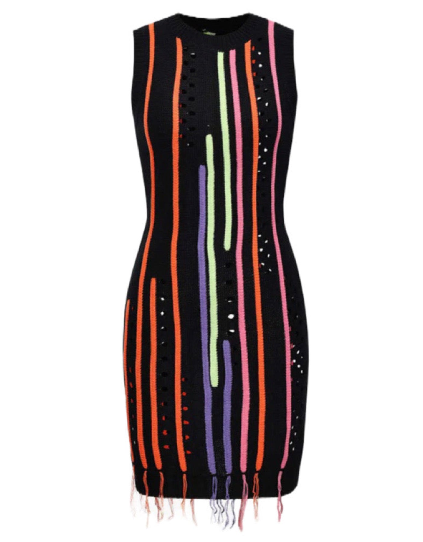 Elevate your seasonal style effortlessly with this refined striped sweater dress. Designed to be a striking standalone premium top quality piece, it combines classic sophistication with playful detailing. The soft black knit fabric feels luxurious against the skin, while the vibrant multi-colored tassels add a unique, celebratory touch. This dress is the perfect choice for making a memorable impression at any special occasion this season.